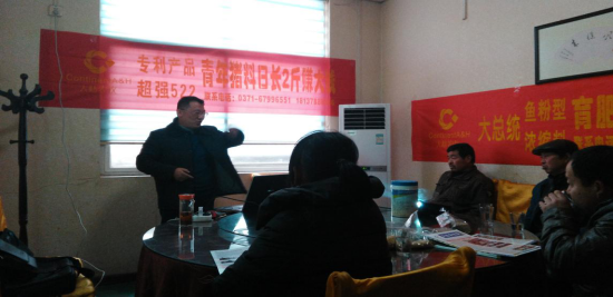大雪過后,偃師市場迎來明朗的晴天,暖暖的陽光似在給廣大養(yǎng)殖戶播撒著這個好消息:應(yīng)客戶需求,大陸農(nóng)牧于12月7、8日在偃師山化安排了兩場終端推廣會。兩場會議由業(yè)務(wù)人員劉國峰和區(qū)域經(jīng)理李萬臣組織,在客戶譚曉敏的全力配合下成功召開。