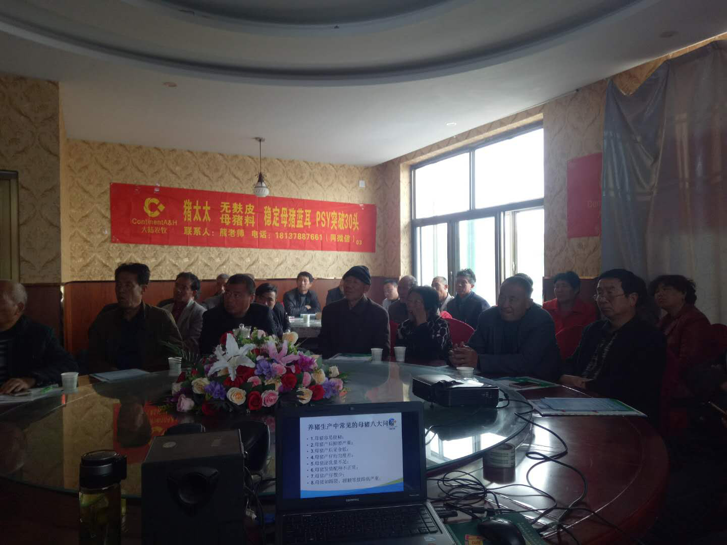 會(huì)議開(kāi)始后,大陸農(nóng)牧的熊程輝老師對(duì)到會(huì)的養(yǎng)豬戶做了養(yǎng)豬行情分析,會(huì)議內(nèi)容主要以養(yǎng)豬虧損期如何抓好母豬效益為主導(dǎo)思路,對(duì)如何排出母豬體內(nèi)毒素、如何提高母豬的生產(chǎn)效益、如何提高母豬的使用年限、如何提高仔豬的斷奶窩重,針對(duì)在母豬飼養(yǎng)過(guò)程中出現(xiàn)的一系列問(wèn)題,對(duì)養(yǎng)豬戶進(jìn)行了深入淺出、通俗易懂的激情講解。同時(shí)對(duì)大陸農(nóng)牧大母豬繁殖營(yíng)養(yǎng)體系中40母豬料的使用方法和使用模式進(jìn)行了認(rèn)真的講解,詳細(xì)的告訴養(yǎng)豬戶大陸農(nóng)牧的母仔套餐是母豬多產(chǎn)仔、小豬活力強(qiáng)的有效保證,是仔豬70天達(dá)到70斤的有效保證。熊老師在會(huì)議最后明確強(qiáng)調(diào):對(duì)于規(guī)模在300頭母豬以下的養(yǎng)豬戶,豬價(jià)4.8的保本生產(chǎn)成績(jī)做法是------26頭,大陸農(nóng)牧的大母豬40母豬料系列產(chǎn)品是提升PSY的有效保證,可以幫助不達(dá)標(biāo)的豬場(chǎng)盡快先達(dá)到PSY26頭。來(lái)自全國(guó)各地大量的實(shí)證數(shù)據(jù)驗(yàn)證了大陸農(nóng)牧的母豬料效果,其中大陸農(nóng)牧無(wú)麩皮哺乳母豬料—乳寶40的使用效果