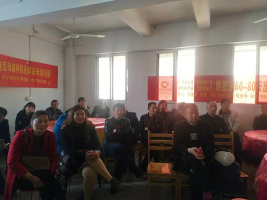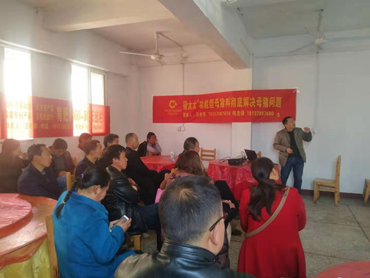 2019年3月12日上午,中國母豬大講堂南召母豬料推廣會順利召開。大陸農(nóng)牧營銷中心南方事業(yè)部程總、南陽區(qū)主任司英西,南召經(jīng)銷商朱天賓黃梅及當(dāng)?shù)?span style="FONT-FAMILY: Times New Roman">10頭母豬以上規(guī)模豬場老板25人參加會議。
